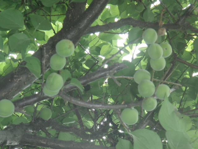 梯子をかけて、棘に攻撃されながら、ほんの一部、150個ほど収穫しました。