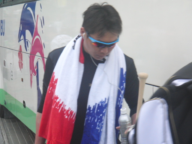 ところが、ところが、宜野座球場に着いた時には、少し小雨交じり。