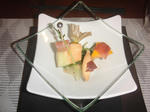 2段になっていて、上の部分に、ほうずきと、メロンとイベリコ豚。