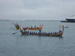 ドラゴンボートを漕いで、325m先の旗を回って戻って来る、