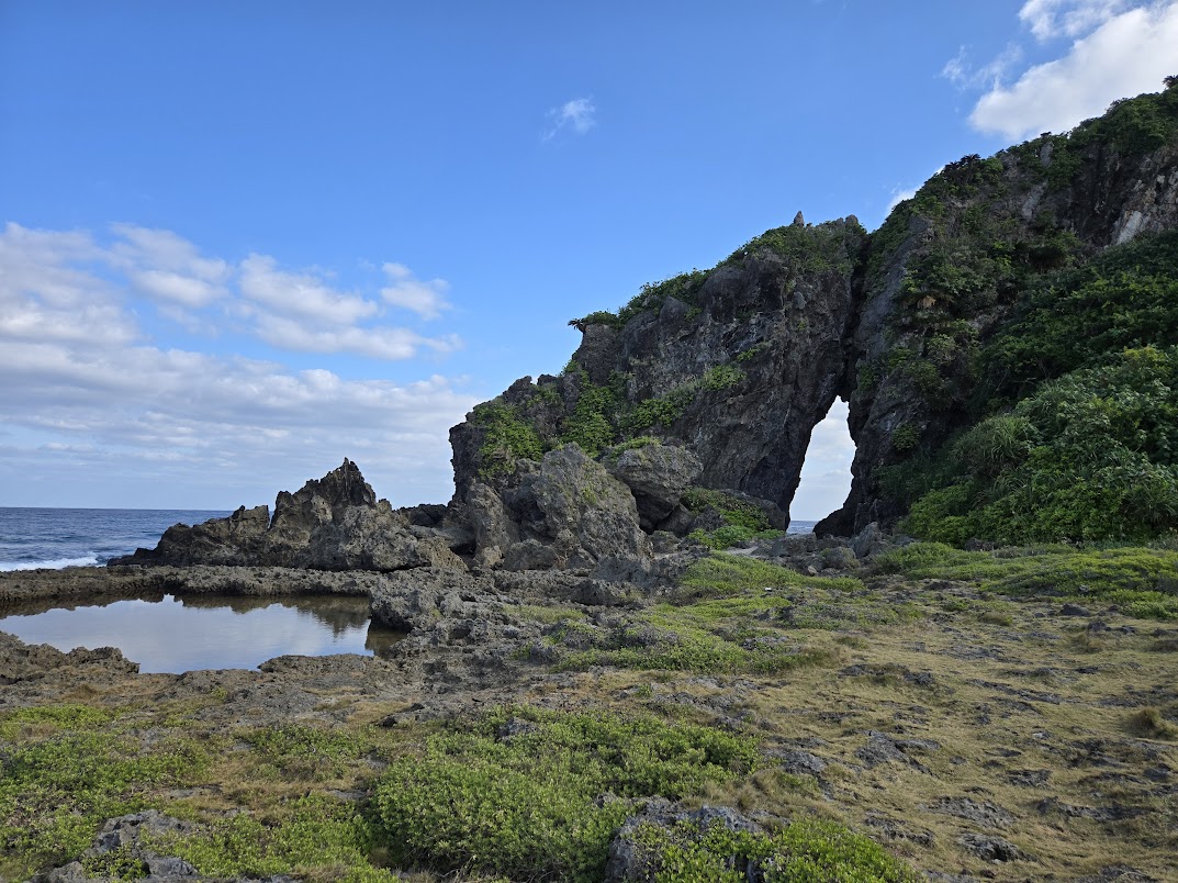 レンタカーで、ヤシヤーガマー→おばけ坂→具志川城址→ミーフガー→タチジャミ→比屋定バンタ→畳石→熱帯魚の家→笑島→サイプレスリゾートホテル→久米島博物館
