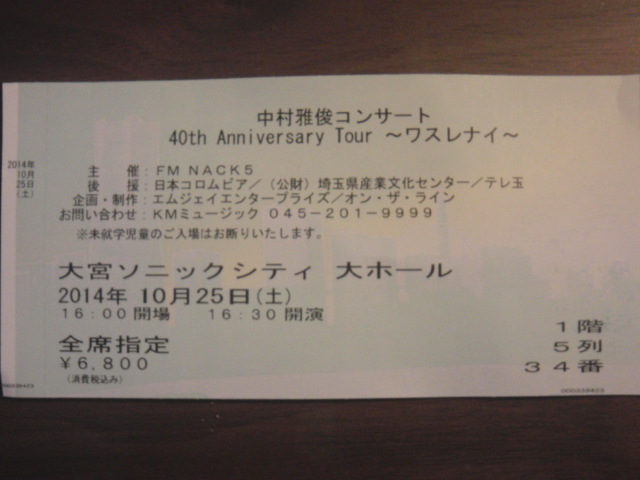 10月25日(土)は、大宮ソニックシティで、中村雅俊さんの