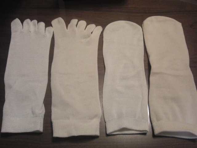 履く順番があって、左から絹の5本指⇒綿の5本指⇒絹の靴下⇒綿の靴下