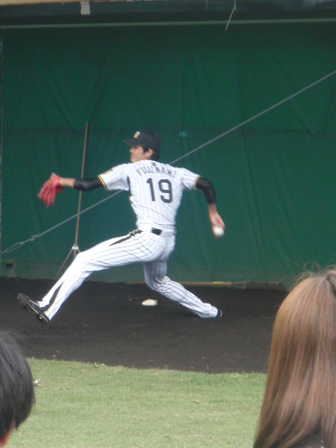 藤波投手、最終日もブルペンで投球練習。ギャラリーもいっぱいでした。