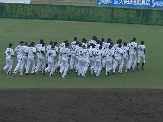 そのまま、グランドに書かれた円に並び、関本選手会長の挨拶で、一本締め!