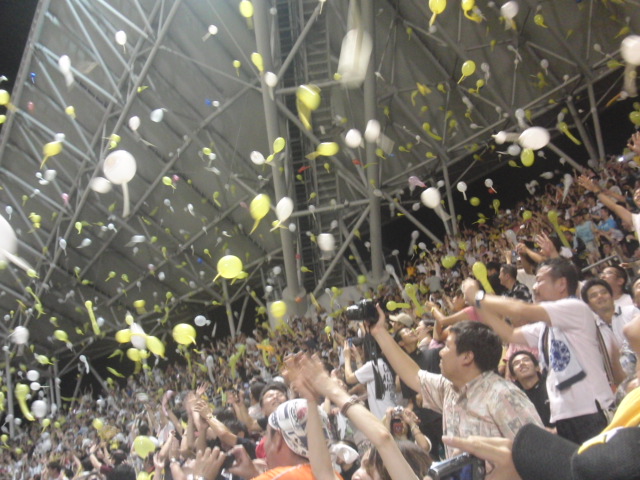 昨日は、7回裏で、ジェット風船を飛ばす時に、かなり前から準備を