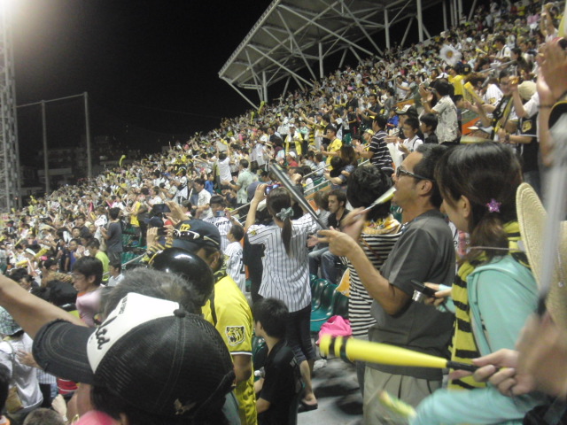 1塁側には、応援団はいなくて、阪神サイドには、応援団がいて、