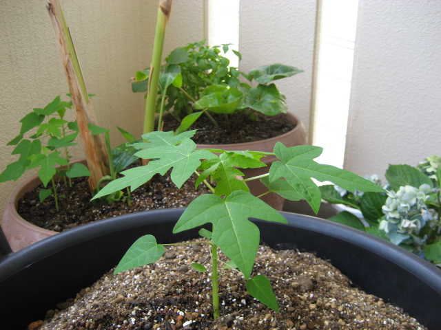 先週、パパイヤの木をダメにしてしまって、1つ鉢が空いていたので、その鉢に早速植えました。