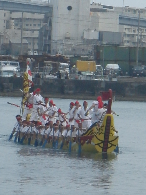 黄色の船が「久米」の船です。この船は、中国を表しています。