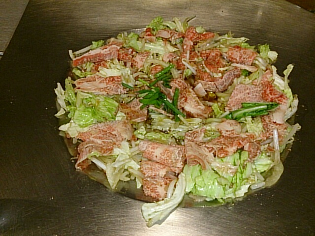 サラダと一緒に、シークワーサー醤油味と