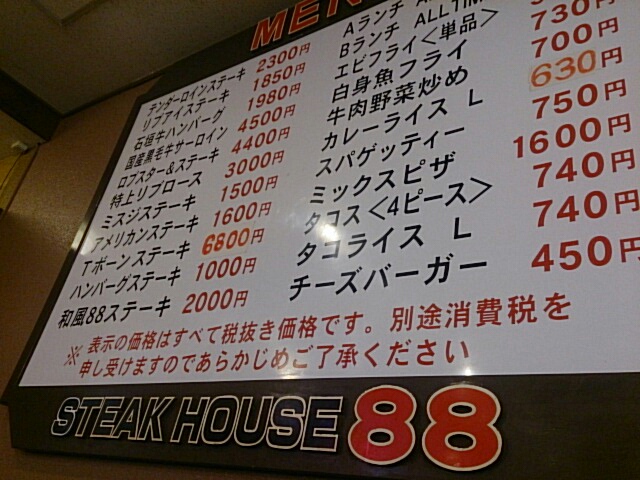 勇気を出して、お昼はステーキハウス88に