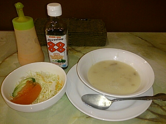 まずは、スープとサラダが来ました。