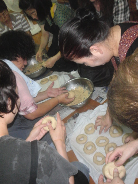 ドーナツ型に成型します。