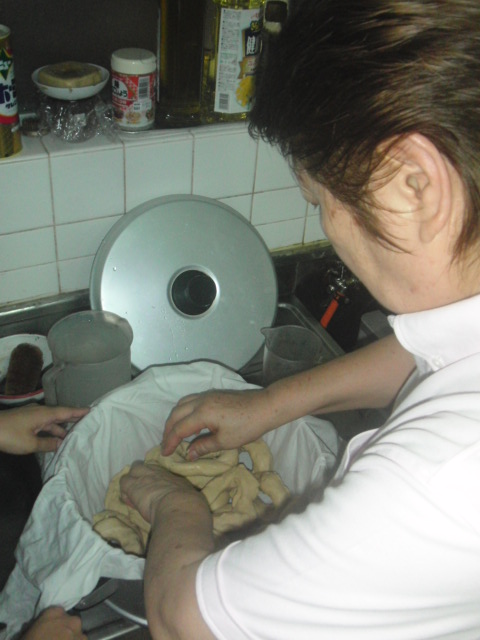 赤ヌカ、白ヌカ、もち粉に塩とお湯を入れて、手でよ~く捏ねて、