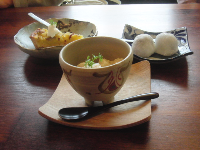 水菓子:金柑大福、サツマイモのタルト、ごまのブラマンジェの中からチョイス