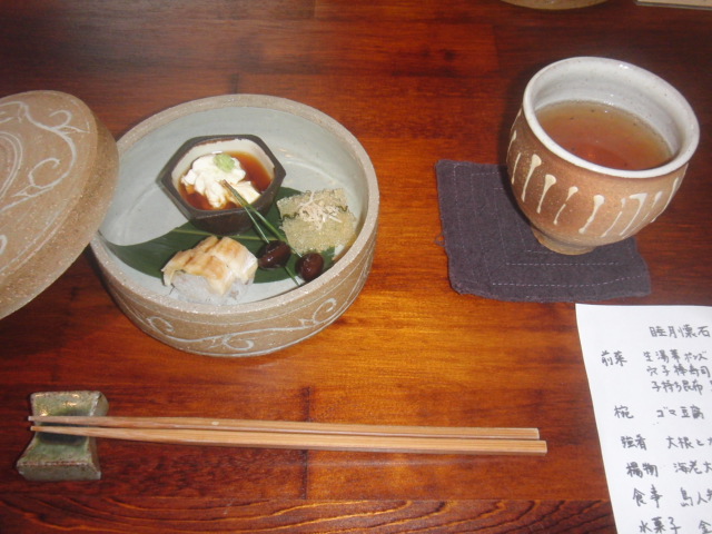 前菜:生湯葉ポン酢、穴子棒寿司、子持ち昆布、黒豆