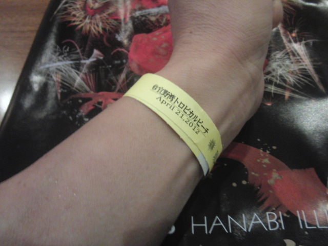 海炎祭の会場に着いて、指定席だったので、専用の入り口で、腕にテープを