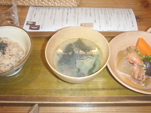 ゴーヤーと赤ピーマンのわかめスープ(真ん中)