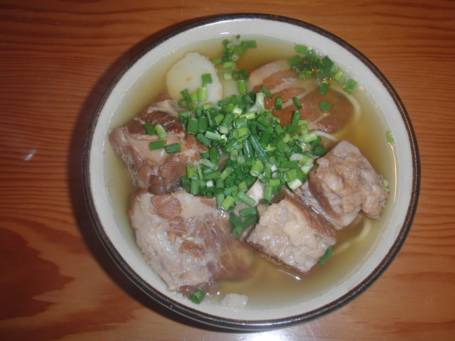 食べたのは、本ソーキ、軟骨ソーキ、三枚肉が乗っている沖縄そば。