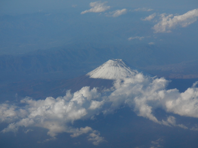 行きの飛行機からの富士山は、ちょっと雲が多かったです。