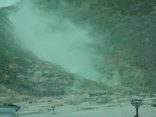硫黄山ではアイヌの民族衣装を着けて記念撮影。