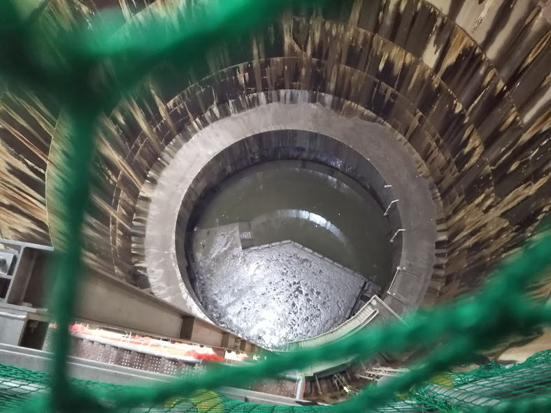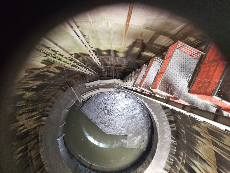 ↓調整水槽から見る、第1立坑です