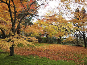 11月には、もみじやハゼが赤く、イチョウが黄色に染まり、